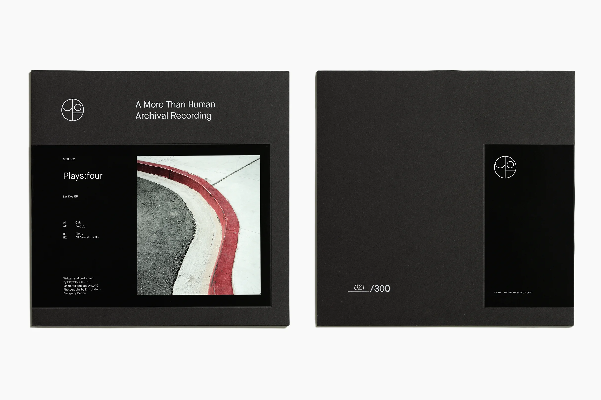 More Than Human’s “otherworldly sounds” are released on vinyl only and produced in limited pressings of 300. They are tactile objects designed to celebrate the medium as well as the music. To address its budget constraints a modular solution to its branding and packaging was essential to save on costs.
