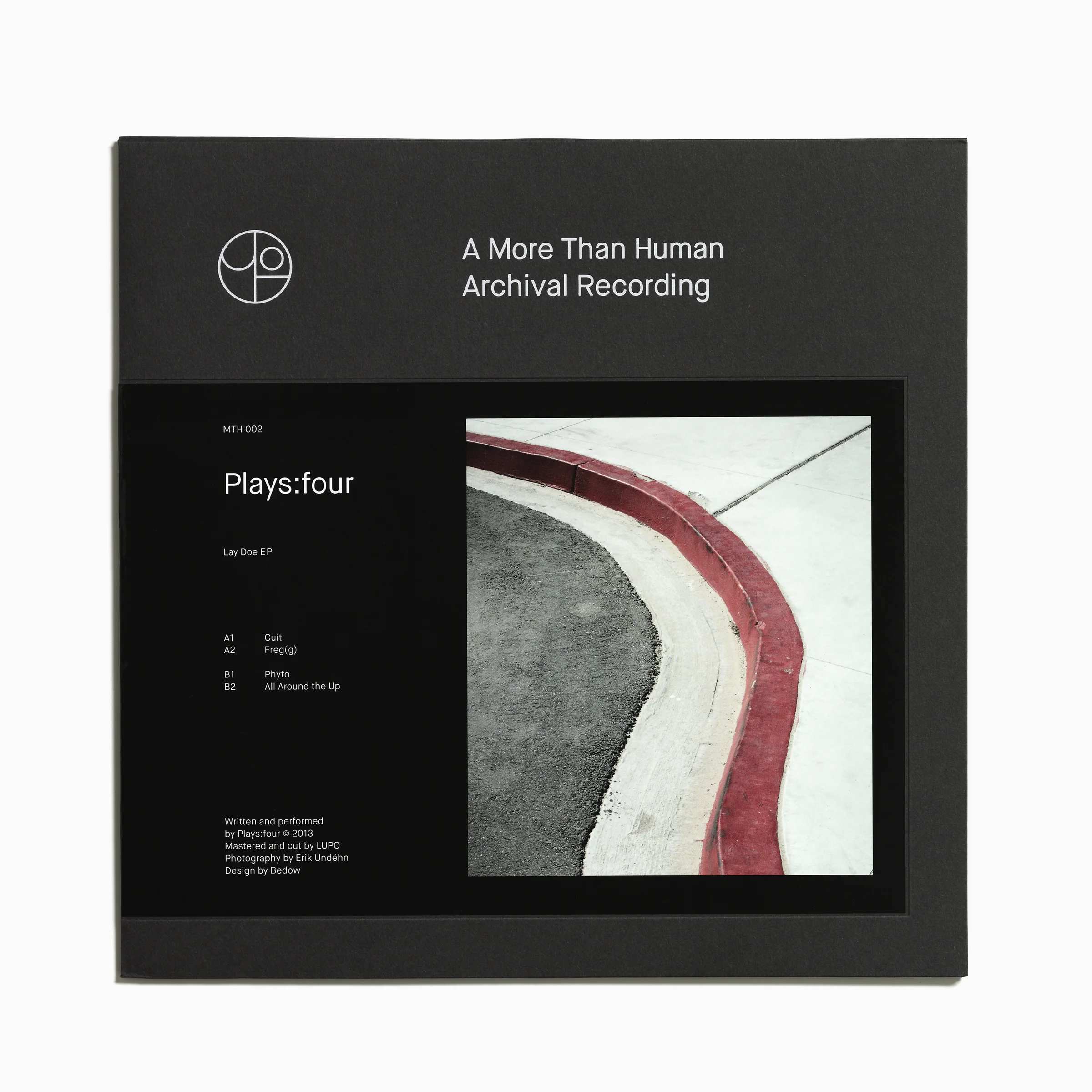 The More Than Human logo-mark appears abstract at first glance, but closer inspection reveals an enigmatic character; half human, half robot. This level of subtle detail is present throughout the label’s physical assets, with white foil type printed on uncoated, black substrate to create a premium feel. Sleeves were printed with the same design template with a blank debossed window to house a glossy decal bearing the artwork and particulars of each release.