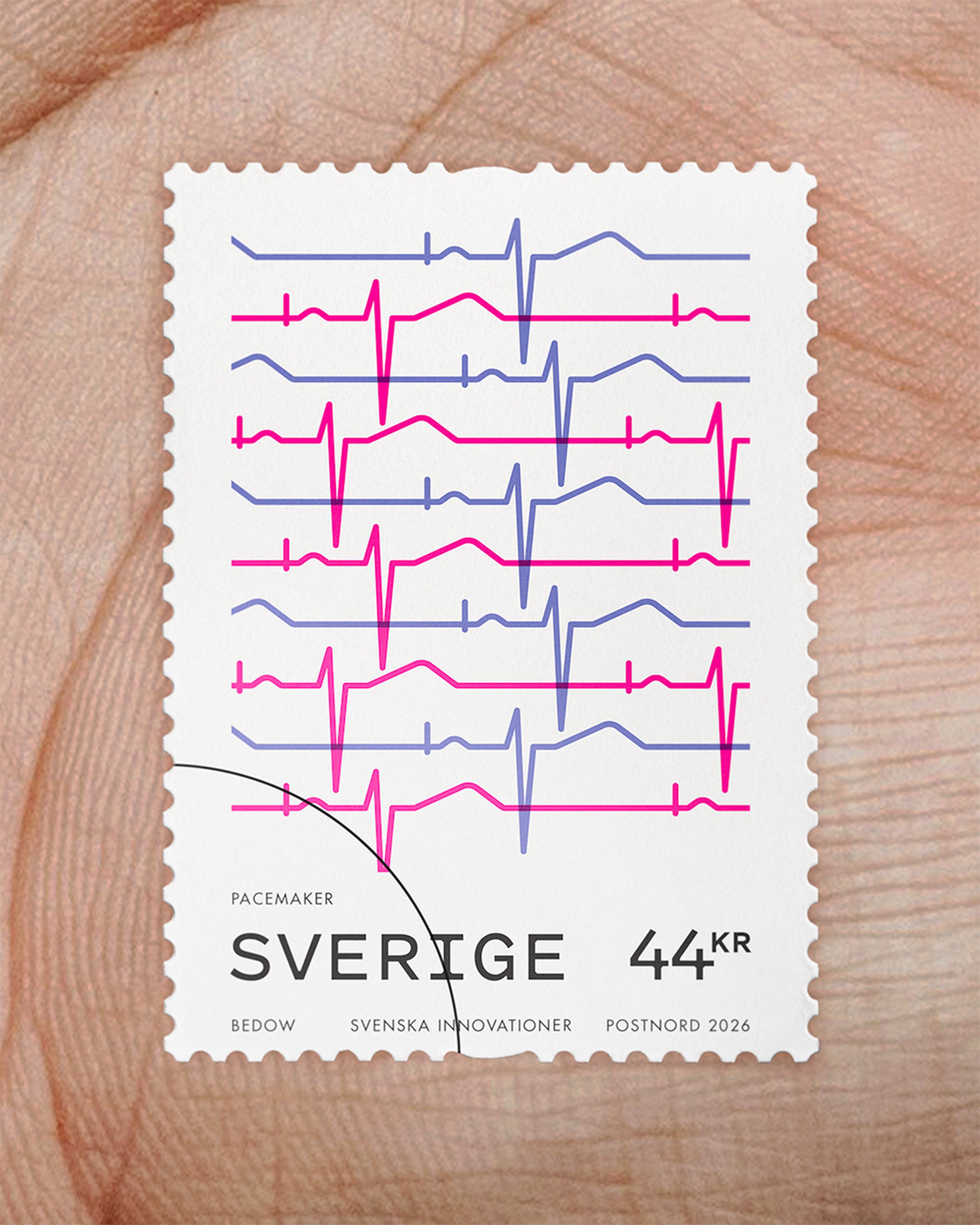 Sweden has a long history of innovation. Perhaps it is our strong welfare system that has encouraged companies to invest in new ideas. Or maybe it is simply our cold climate that has forced us to be a bit more inventive to survive. Either way, PostNord aims to highlight Sweden’s innovative spirit with a series of stamps featuring five very different innovations: the pacemaker, solar-purified water, telecommunications, digital music streaming, and shared parental leave. So what do they have in common? They all make waves – from our small, slightly frozen corner of the world to the rest of it.